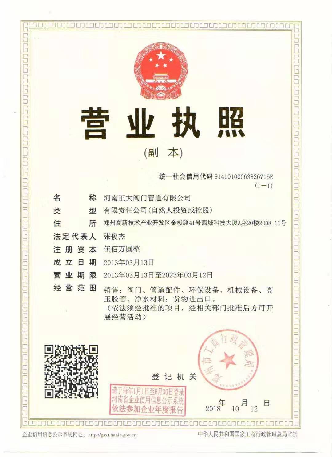 河南正大閥門(mén)管道有限公司