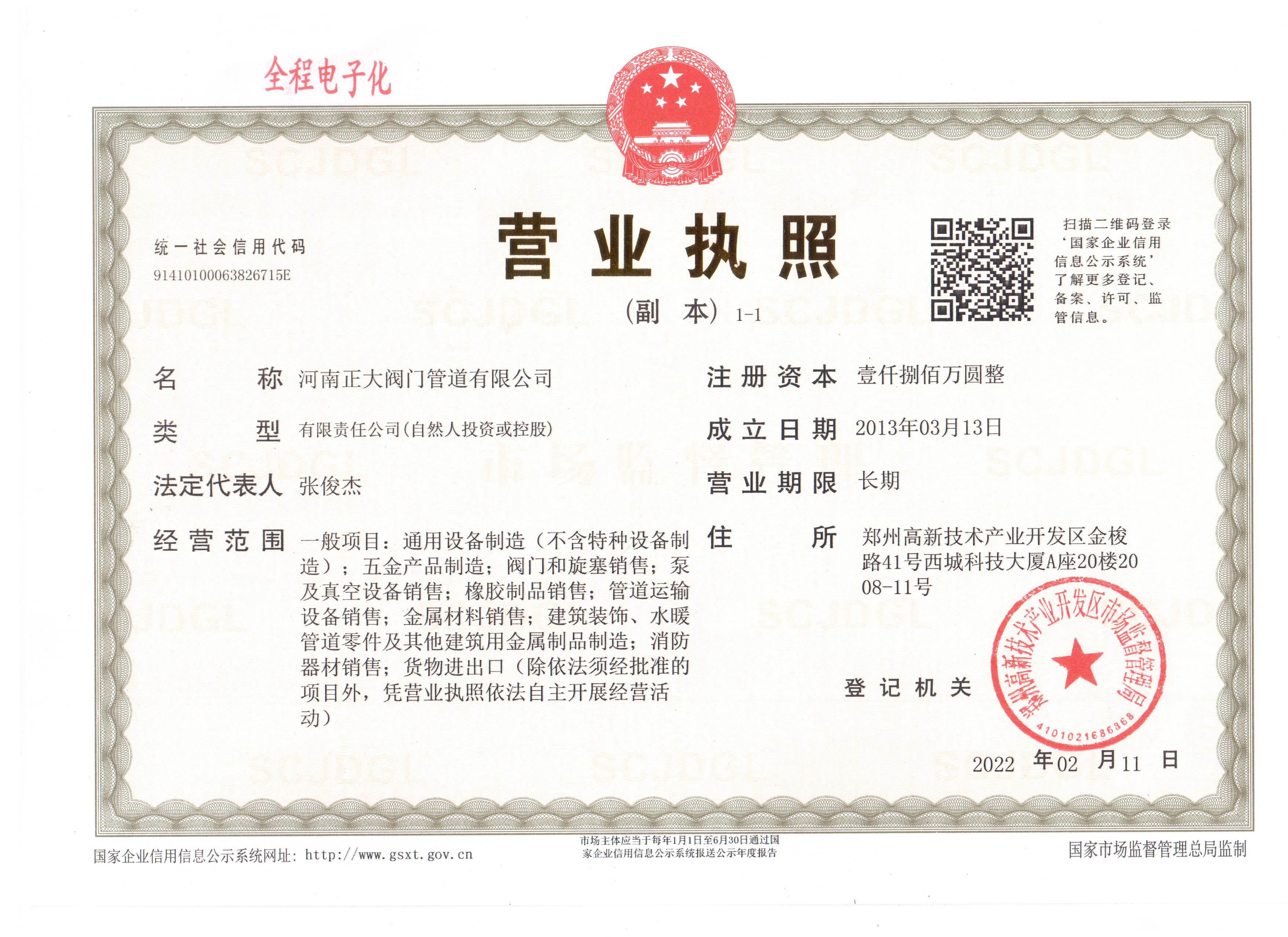 當前位置:河南正大閥門管道有限公司 > 公司資質(zhì)