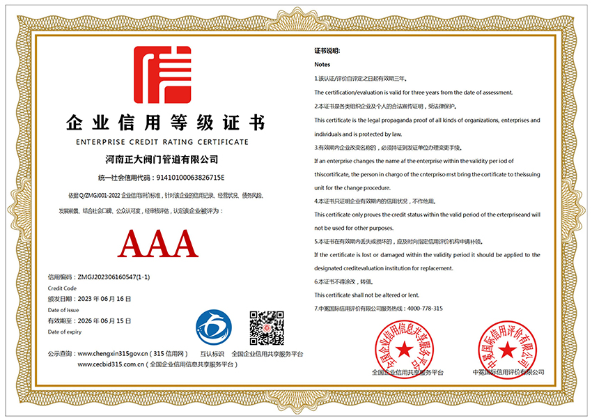 當(dāng)前位置:河南正大閥門管道有限公司 > 公司資質(zhì)